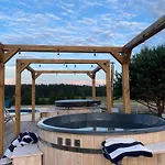 La Gizycko-Przerwanki Domki Widok Na Mazury Villa si trova a 10 minuti in macchina dalla Polowa Kwatera Himmlera e offre una jacuzzi. Questa villa offre la possibilità di praticare escursioni a piedi, equitazione e pesca nella zona, a una distanza di 2 km dal Goldapiwo.